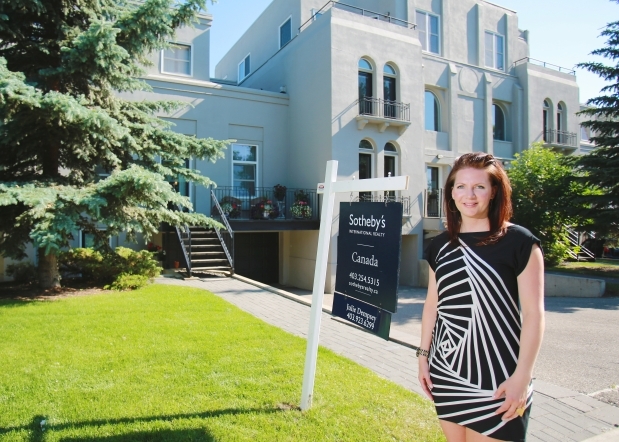 Realtor Julie Dempsey outside one of her listings in the Lindsay Park Place building in the Mission area of Calgary.
